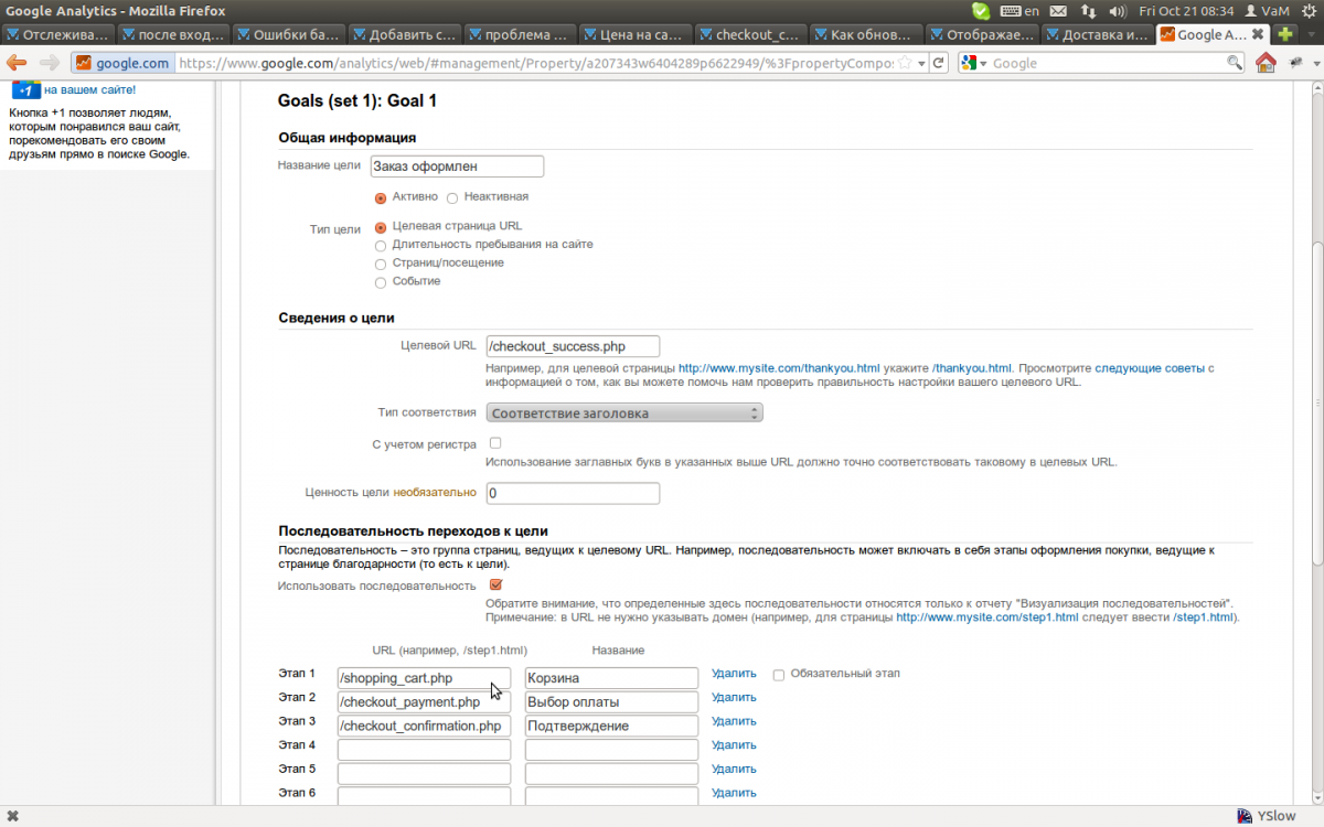 Александр Муравьев 0 Опубликовано 12 октября, 2011 Жалоба Share Опубликовано 12 октября, 2011 вопрос по статье http://vamshop.ru/fo...vamshop-с-помо/ в примере понятно сколько народа нажало - Корзина и сколько на выходе оформили заказ завел такую же цель. но пишет 100%. хотя сам специально прерывал заказ и т.д. что не так сделал, подскажите, будьте любезны Ссылка на сообщение Поделиться на другие сайты
