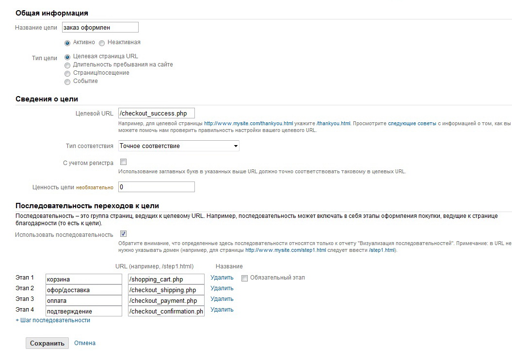 Александр Муравьев 0 Опубликовано 12 октября, 2011 Жалоба Share Опубликовано 12 октября, 2011 Если Вы сделали как написан в статье, всё будет работать и всё показывать. Может просто ещё данные не собрались. за три дня собрались. вот такие как на картинках что Вы указали как целевой урл? я поставил /checkout_success.php то есть (успешное оформление заказа) цепочка ведущая к нему как на вашем примере или надо указывать целевой урл - корзину? из статьи не ясно PS. уведомления о новых сообщениях в теме на форуме работают? а то подписываюсь, и ни одного не пришло (@mail.ru) Ссылка на сообщение Поделиться на другие сайты