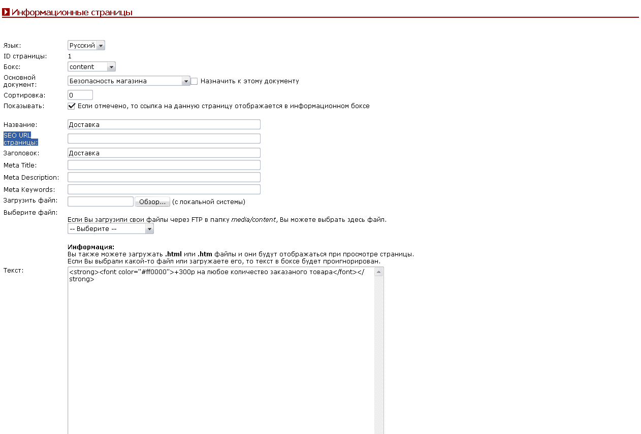 support 447 Опубликовано 18 апреля, 2009 Жалоба Share Опубликовано 18 апреля, 2009 Дайте ссылку на магазин. Скорей всего Вы стандартную страницу доставка удалили и создали новую страницу неправильно. Ссылка на сообщение Поделиться на другие сайты