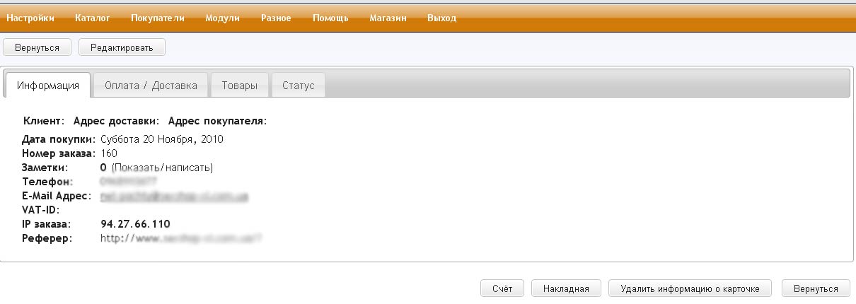 Иван Юрченко 0 Опубликовано 20 ноября, 2010 Автор Жалоба Share Опубликовано 20 ноября, 2010 Вот скрин - нет имени покупателя на карточке заказа. Причем имя видно в админке на первой странице /admin/start.php а также на странице заказов /admin/orders.php Ссылка на сообщение Поделиться на другие сайты