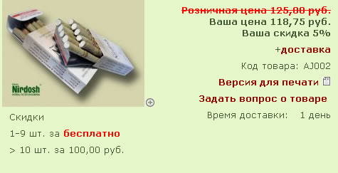 Boris Kramarenko 0 Опубликовано 2 февраля, 2011 Автор Жалоба Share Опубликовано 2 февраля, 2011 Это я в курсе. Но проблема в том, что он пишет, что при заказе от 1 до 9 штук бесплатно. Вот в чем проблема. А должен писать цену, которая указана в гафе Ваша цена. Ссылка на сообщение Поделиться на другие сайты