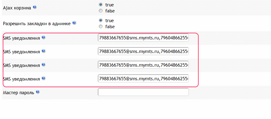 Это нужно через phpMyAdmin, в таблице configuration удалить дубли, оставить одну запись с указанием sms.