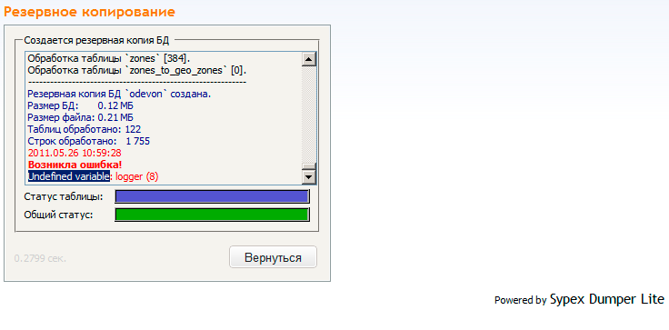 Uriks 0 Опубликовано 26 мая, 2011 Автор Жалоба Share Опубликовано 26 мая, 2011 Так вроде как отработал уже скрипт или нет, не создал базу в /admin/backups/?! Скрипт отработал, Базу создал... Но при развороте этого бэкапа все падает... :-X Уже страшно начинать забивать товаром... Ссылка на сообщение Поделиться на другие сайты