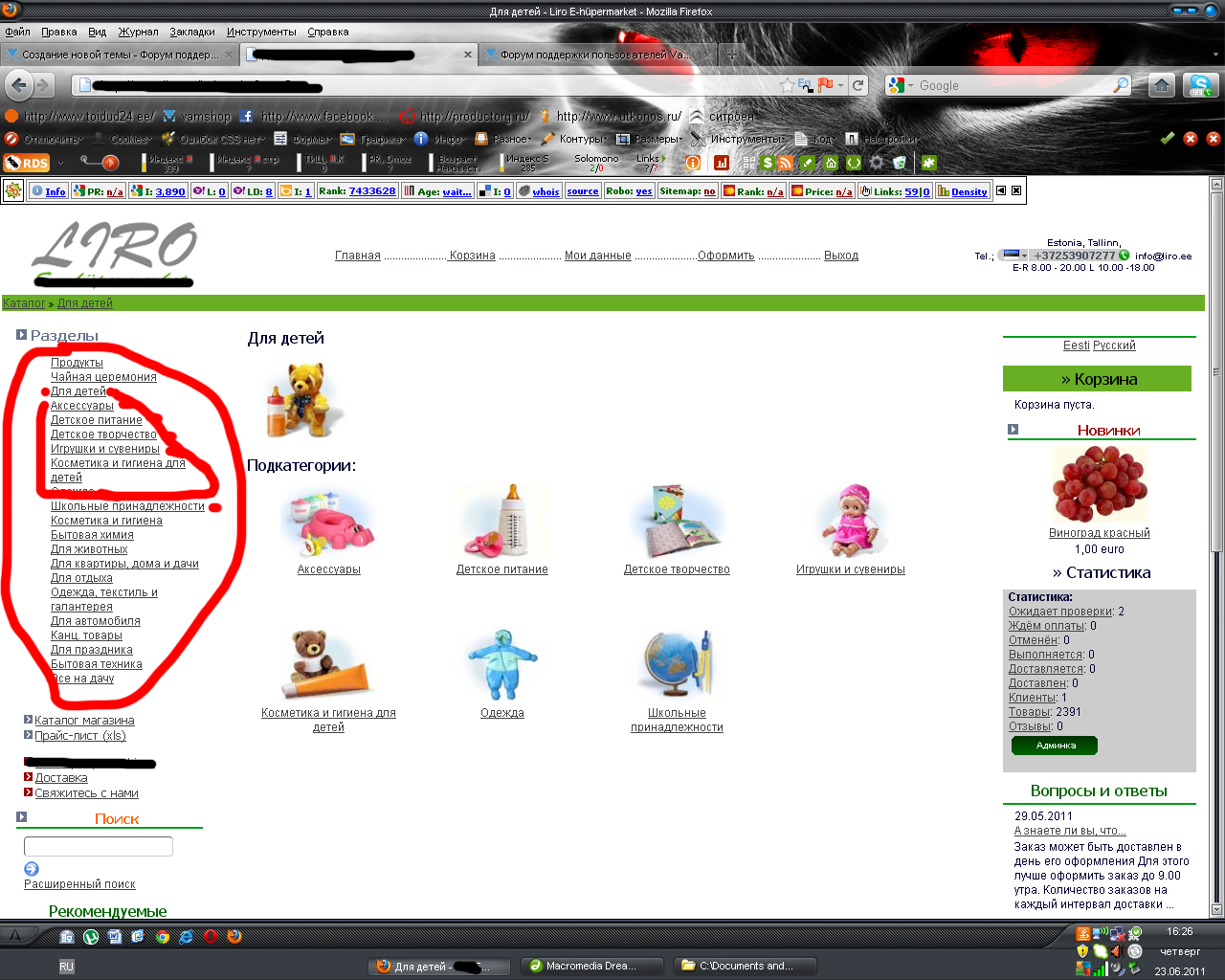 liro 0 Опубликовано 23 июня, 2011 Жалоба Share Опубликовано 23 июня, 2011 Добрый день. Решил установить цсс меню. До этого скопировал сили и категории пхп. После установки понял что мне это не подходит. Удалил модуль поставил обратно скопированные стили и категории пхп но вид категорий не стал таким как был. Тоесть раньше перед категориями стояли серые палочки и когда нажимаешь на категорию они сдвинались и перед ними красные палочки вообщем стил вамшоп. на данный момент все категории в столбик и когда нажимаешь просто открывается под категория но это не как не выделено. Как исправить не пойму. скрин как сейчас Ссылка на сообщение Поделиться на другие сайты