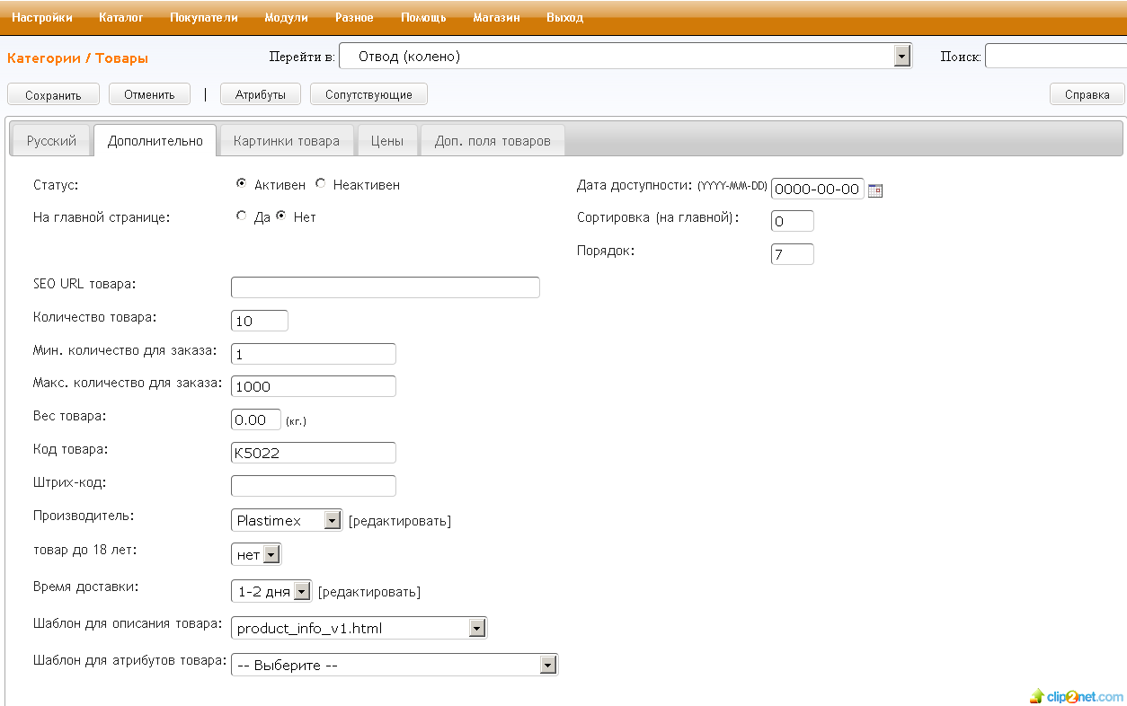 куда тыкали: во всём магазине Шаблон для описания товара как таковой не назначен. если смотреть на вкладке "дополнительно" , то там стоит вариант "-выберите-", но подразумевается, я так понимаю, что это шаблон product_info_v1.html , который применяется по умолчанию. у всех товаров с таким вариантом отображения шаблона на вкладке "дополнительно" кривое отображение на сайте.