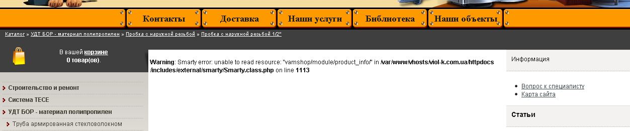 Warning: Smarty error: unable to read resource: "vamshop/module/product_info/" in /var/www/vhosts/viol-k.com.ua/httpdocs/includes/external/smarty/Smarty.class.php on line 1113