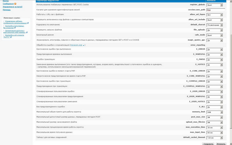 Выставил показ всех ошибок в на хостинге (nic.ru) см. аттач скрин.